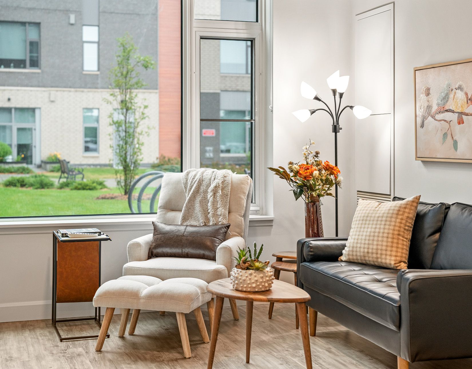 Built for you, these modern 55+ lifestyle apartments blend style and comfort with thoughtful design. Every detail – from step-free entries and wide hallways to open-concept living and accessible kitchens – ensures safety, independence, and enjoyment, while amenities and flexible spaces support seniors’ wellbeing, active lifestyles, and the freedom to enjoy life!